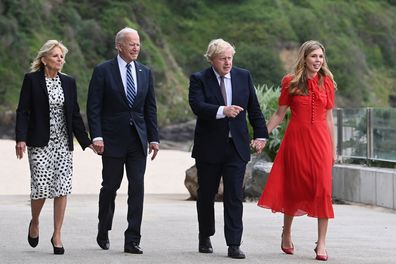 Carrie Johnson Jill Biden : Carrie Johnson And Son Wilfred Join Jill Biden On Walk At G7 Evening Standard : Caroline louise bevan carrie johnson (née symonds;. Jun 10, 2021 · first lady jill biden and carrie johnson joined their husbands for a walkabout in cornwall, ahead of the prime minister's first meeting of the g7 summit with the us president. Jun 11, 2021 · jill biden has said it was 'wonderful' to spend time with carrie johnson and baby wilfred as she tweeted a photo of their barefoot beach walk with the caption, 'the special relationship continues'. Jun 13, 2021 · meeting with the johnsons again on friday, jill biden donned a recycled scarlet dress from brandon maxwell that she's been seen in before. Jun 11, 2021 · it followed a jovial inaugural meeting last night with us president joe biden, first lady jill and his new wife carrie. Jun 11, 2021 · angela merkel, carrie johnson, jill biden and even kate middleton were wearing matching clothes today.